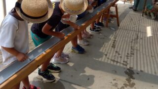お知らせ流しそうめん 夏のお楽しみを5年ぶりに復活しました!そうめんが流れてくるのをドキドキしながら上手にすくって、食べていました!そうめんだけでなくみかんも流して、おなかいっぱいの子どもたちでした!2024.07.24お知らせ園の様子