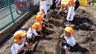 お知らせおいもほり 園のグランドにある畑で、お芋ほりをしました!「おおきいおいもあるかな~??」と言いながら、おいものつるを「うんとこしょ」とひっぱり・「ぬけなーい!!」お友達と「いっしょに・・せーのっ!うんとこしょ!!」・土の中を「どこ~??」「あっ見えてき...2024.10.23お知らせ園の様子未分類