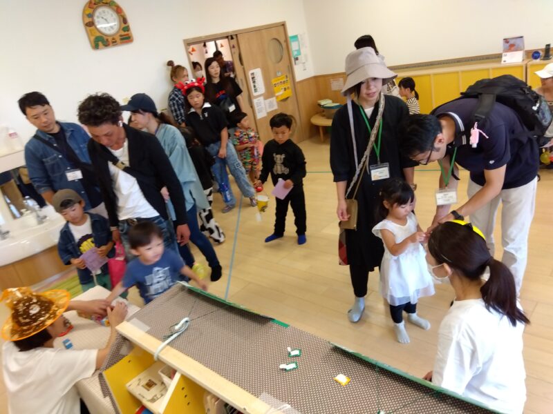 スタンプカードを片手に、お家の方と一緒にいろいろなお店を回って、ゲームをしたり