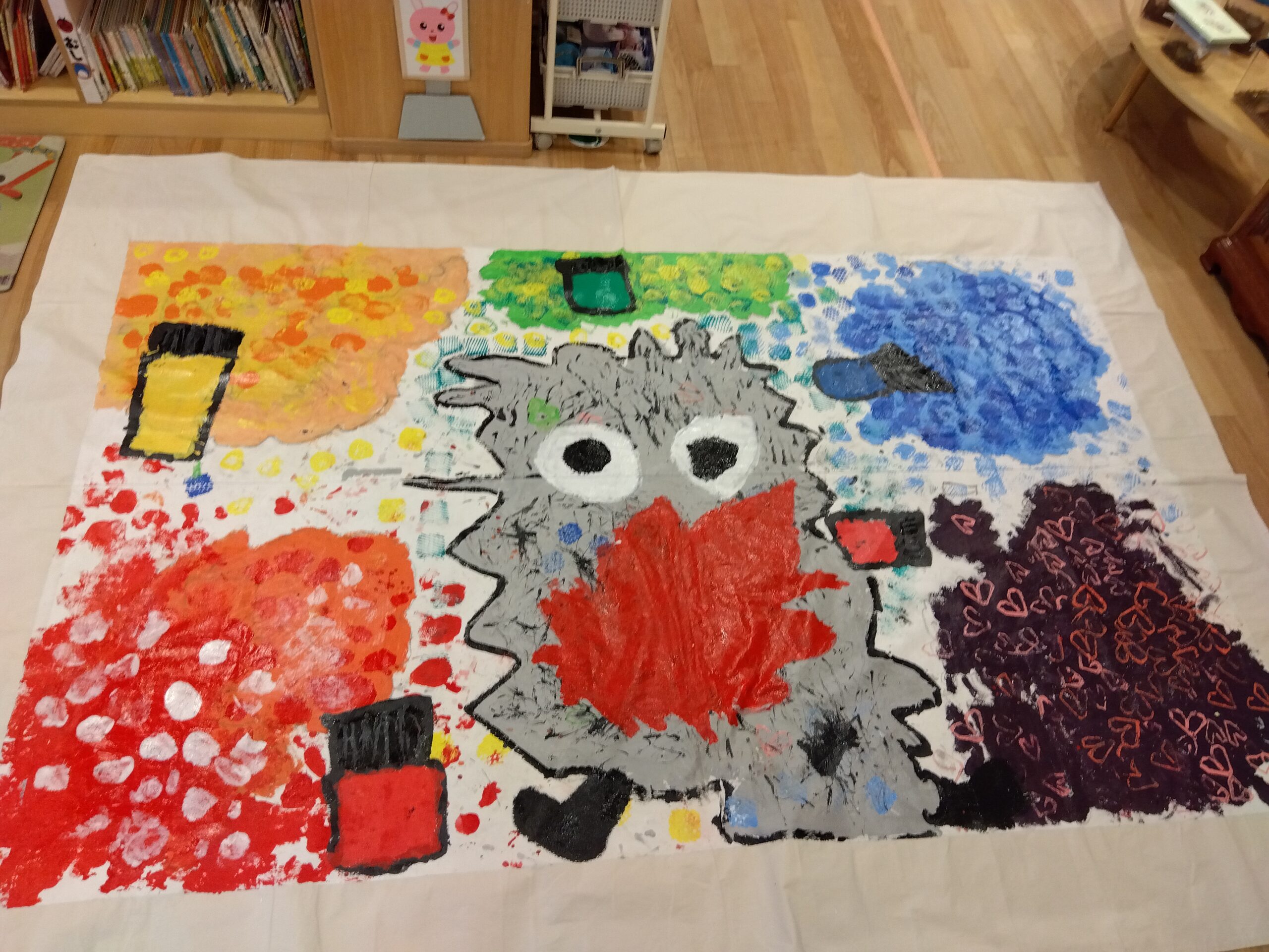 今年のテーマ「希望」について子どもたちと話をして、人の気持ちは「いろいろな気持ちがあるよね」そのいろいろな気持ちに気付ける人になっていってほしいという希望をもって、気持ちをいろいろな色で表現し、作品を描きました。