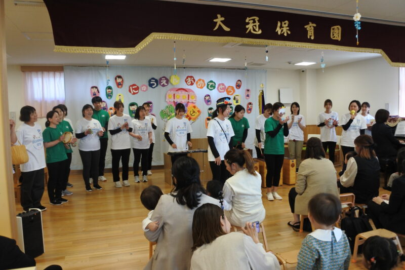 入園・進級おめでとうお知らせ2025.04.14園庭の桜も満開になり、今年度もいよいよスタートしました。22名の新入園児が、先日無事入園式をしました。新しい部屋、友達を迎える子どもたちは、ソワソワしながらも期待に胸をふくらませています。今年1年、楽しいこといっぱいして、過ごそうね!!
